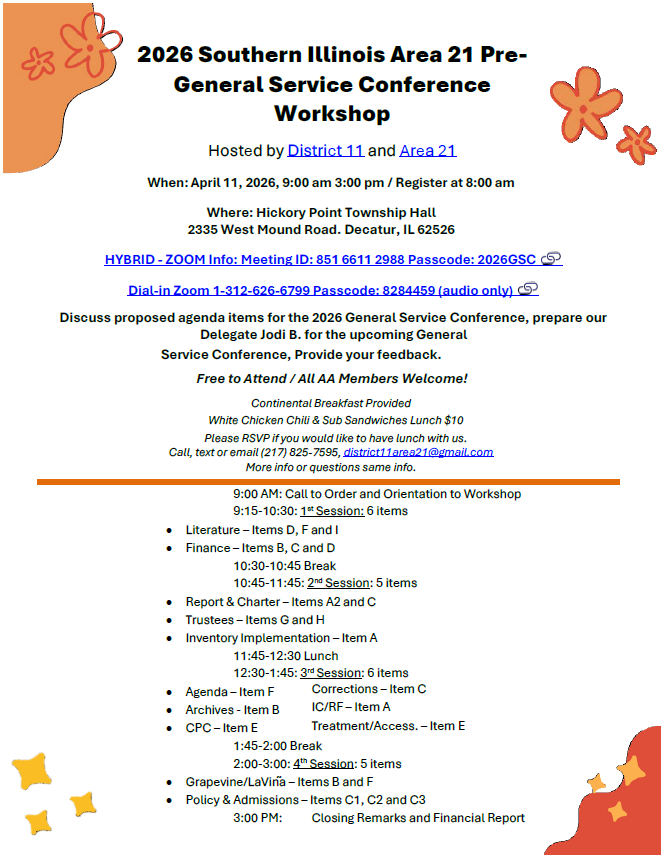 2024 Southern Illinois Area 21 Pre-General Service Conference Workshop