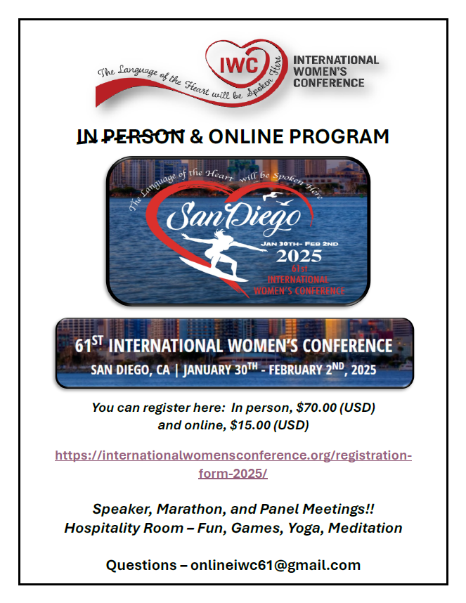 The women of San Diego welcome you to the 61st International Women’s Conference. We look forward to celebrating our sobriety together.